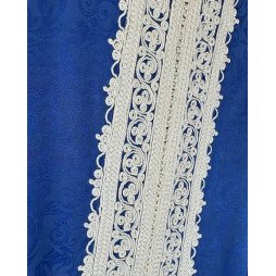 Cette tunique traditionnelle incarne l’élégance discrète grâce à sa teinte bleu profond rehaussée par une broderie blanche délicate. Le tissu légèrement satiné, orné de motifs en ton sur ton, apporte une touche de sophistication tout en restant sobre et confortable.
