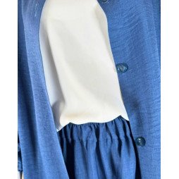 Cet ensemble féminin à l’allure sobre et moderne se compose d’un haut façon surchemise boutonnée et d’une jupe longue à taille élastique. Confectionné dans un tissu fluide bleu effet denim, il offre une tenue légère, confortable et facile à porter au quotidien.