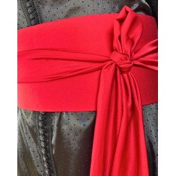 Faites sensation avec ce caftan long noir en tissu satiné, rehaussé par de superbes finitions rouges pour un contraste élégant et raffiné.Les manches évasées à revers rouges et la large ceinture assortie à nouer soulignent avec charme la silhouette, apportant une touche de modernité à cette tenue traditionnelle.