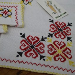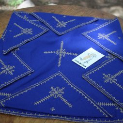 Pièce artisanale unique, brodée à la main avec finesse et ornée de 6 srebets traditionnels. Ce couvre-plateau allie élégance et authenticité, apportant une touche raffinée et patrimoniale à votre table.