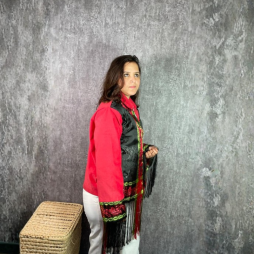 Pièce artisanale marocaine réalisée avec soin, mettant en valeur des motifs géométriques inspirés de l’art traditionnel. Son design patchwork et ses couleurs harmonieuses lui donnent un caractère unique, alliant authenticité et modernité. Confortable et facile à porter, elle s’adapte à différents styles et apporte une touche originale et élégante à la tenue.